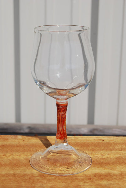 The wine you drink has hopefully been lovingly created with good taste in mind, so shouldn't the glass you drink from also be crafted with love and intention? All of the glasses made at Mirador Glass are individually crafted from the finest borosilicate glass. Borosilicate is a high quality, shock resistant glass that is used in laboratory settings as well as kitchen and dining. The stems are made in a variety of beautiful, intricate, swirling colors, while the foot and bowl remain clear. Less color makes these glasses more affordable than our swirl pattern glasses, but if you're looking for more color, be sure to check out our other offerings. Each glass is approximately 8 1/2 " tall and 3 1/2" across the top, and hold 12-14oz. E We stand by our stemware and offer free lifetime repairs!