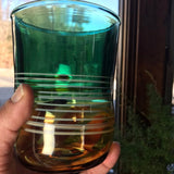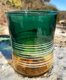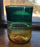 Start your Mirador Glass collection today or someone else's. This gorgeous glass features teal/green and amber/gold-tint glass with butterscotch stripes. Approximately 4.5’’ and 3" across. Holds 12-16 oz. Everything at Mirador Glass is made from Borosilicate glass. This high quality, thick, shock resistant glass has a wide variety of uses from lab equipment to cookware and kitchenware. Yes you can put boiling water in it!! No, the colors will Never Fade!