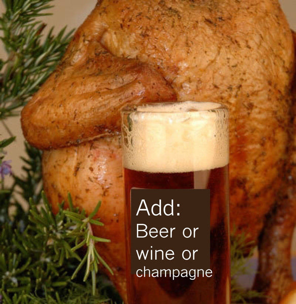 When the roaster is filled with herbs & spices, beer or wine, olive oil, it turns into a mini liquid smoker.