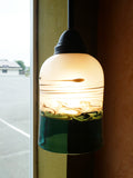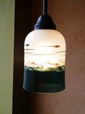 These pendant lights are bright white on top and a beautiful clear Lake Green glass on the bottom.