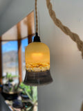 This listing is for our ocean inspired pendant shade, with a slight flare towards the bottom. It is handmade and sandblasted to achieve an organic, opaque look. The colors are blues and sandy colored beiges with some opalescent swirls. It would look fabulous in a beach home or beach-inspired home! The shade is 9” long and 5” across. Takes a standard 60 watt bulb.