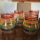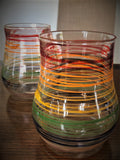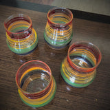 These handcrafted rainbow stemless wine glasses can hold over 20 ounces, and are molded nicely to fit your hand. All items are crafted with love and care in the Hudson Valley, New York. The glass used is Schott Duran Borosilicate, which is the highest quality, scientific grade glass available. What this means to you, is that all Mirador Glass products are remarkably durable-- dishwasher and microwave safe, in addition to being non-reactive and lead free! These fun, colorful glasses measure approximately 3" diameter at the mouth, 5" in height, and 4" at the widest point. Each glass is handmade, so subtle variations will occur. Sets are available, but listing price is per glass.